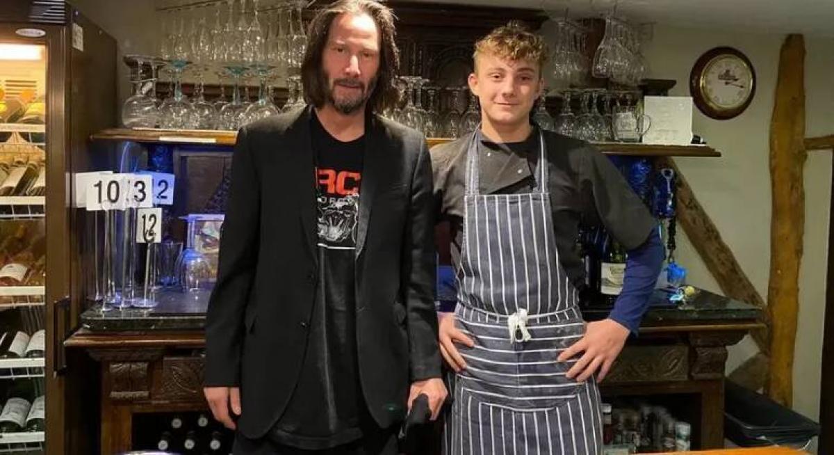 O ator Keanu Reeves surpreendeu os funcionários de um pub em Hertfordshire, no sul da Inglaterra. A estrela de Hollywood conversou com a equipe do estabelecimento e posou para fotos.