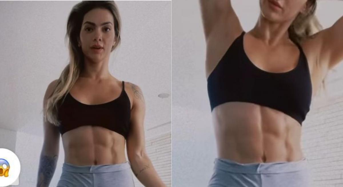 Em seguida, a cantora contou que costuma receber comentários de internautas dizendo que ela está com a barriga chapada porque fez procedimentos estéticos, ou usa anabolizantes. Porém, ela garante que a forma física é fruto dos exercícios e mostrou um pouco do treino na academia.