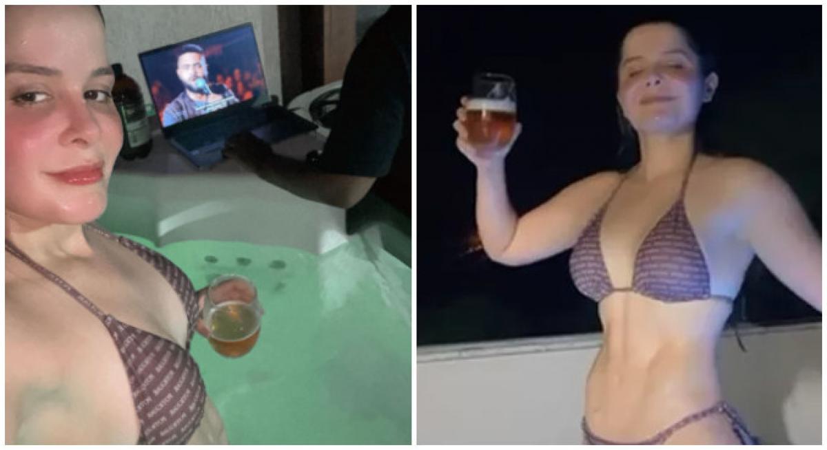 Com um copo de cerveja na mão, Maraisa ostentou a barriga tanquinho ao posar só de biquíni. Desde que mudou os hábitos e adotou um estilo de vida mais saudável, a cantora passou a mostrar a evolução do corpo nas redes sociais.