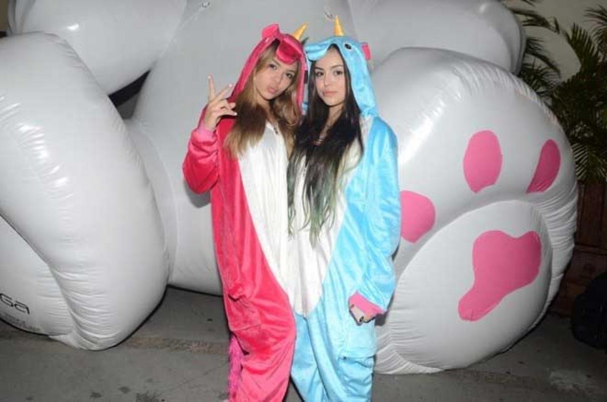 MC Melody e família curtiram a festa do pijama no aniversário de 25 anos da funkeira Tati Zaqui, em um buffet em São Paulo. Melody e a irmã Bella Angel chamaram a atenção com trajes de unicórnio.