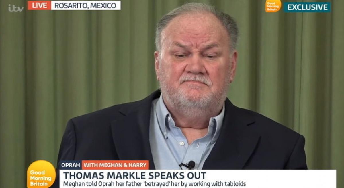 Na entrevista para Oprah, Meghan diz que o pai a traiu por aceitar falar com os tabloides que tanto a perseguiam. Thomas diz que só faz contato com a imprensa para poder chegar perto da filha: "Eles dizem que estou tentando tirar vantagem usando a imprensa. Basicamente, o que faço é porque não tenho notícias deles. Se eu não tiver notícias em 30 dias, eu vou lá e conto outra história para a imprensa. Eu adoraria saber deles. Falo com a imprensa porque eles não falam comigo. Quando decidirem falar comigo, eu paro de falar com a imprensa".
