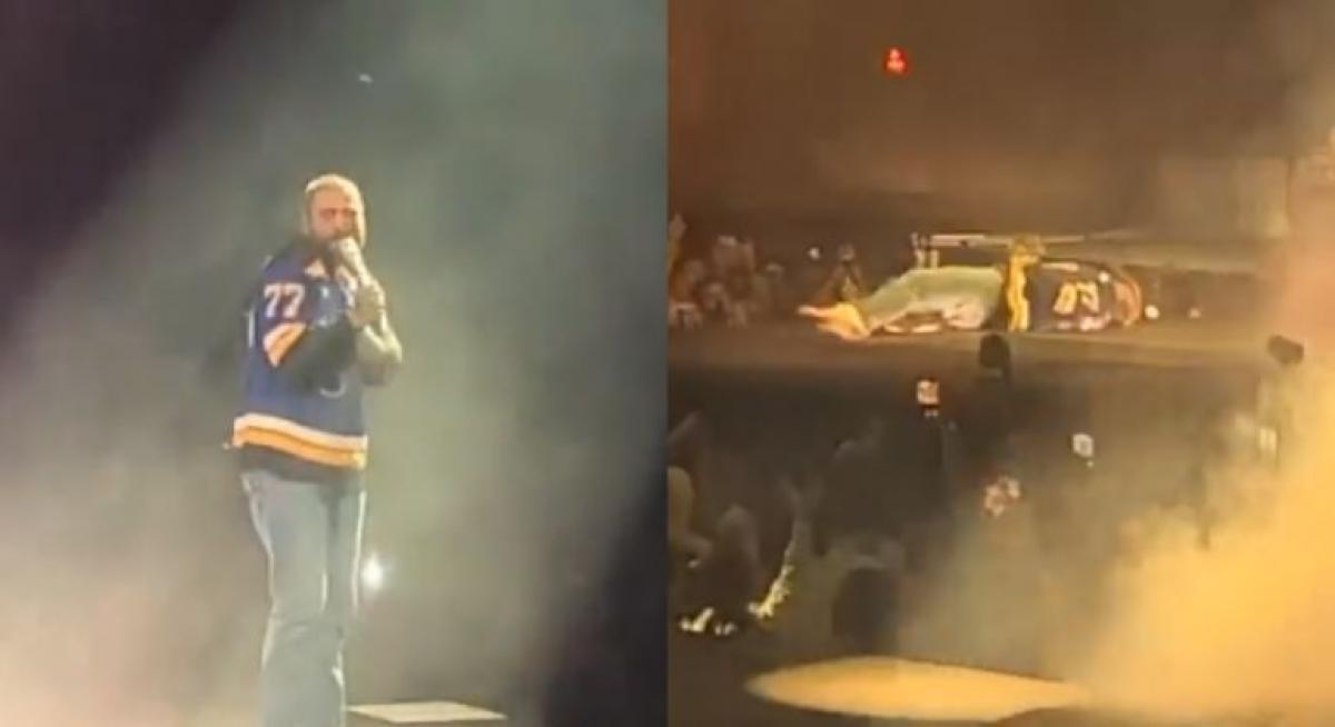 Post Malone deu um grande susto nos fãs que o assistiam em um show na noite do último sábado (17). É que o rapper tropeçou em um buraco descoberto durante apresentação em St. Louis, no Missouri, nos Estados Unidos, e precisou ser retirado às pressas pelos paramédicos. O artista estava cantando Circles quando caiu em um vão no centro do palco, usado para abaixar a guitarra, e ficou gritando de dor por alguns minutos.