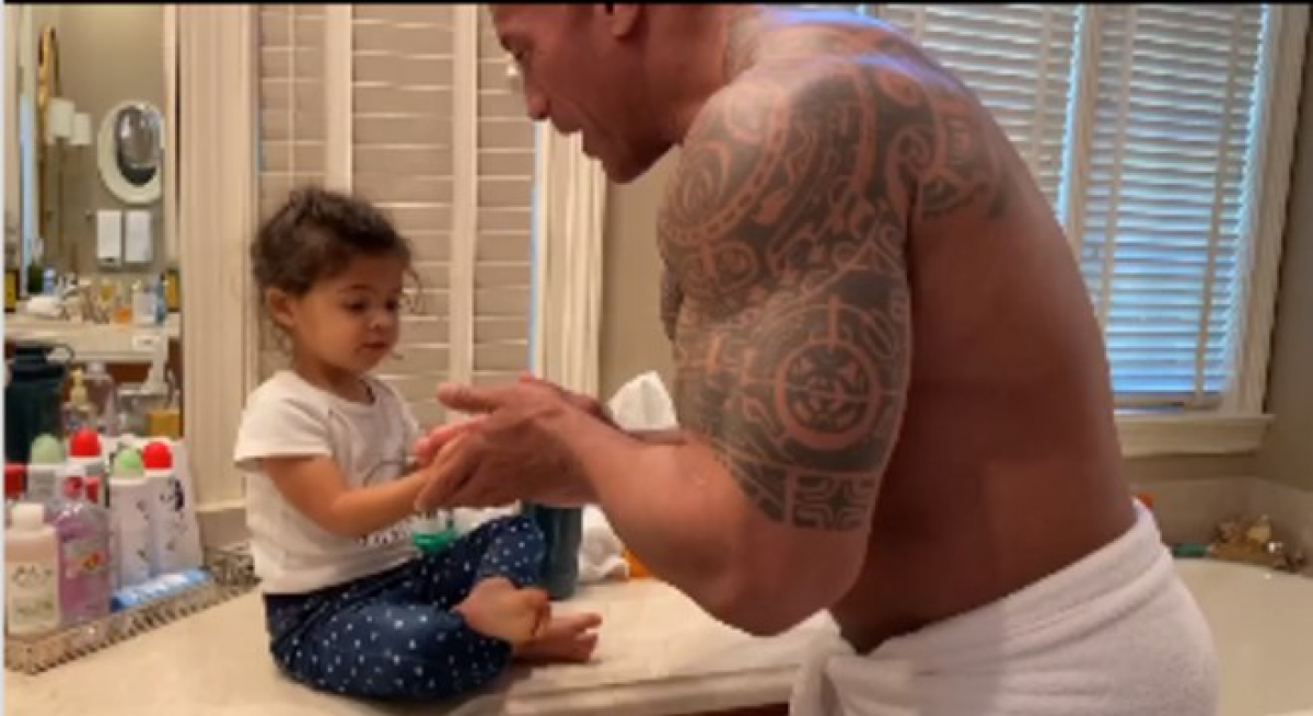 Quer fofura? O ator Dwayne Johnson, mais conhecido como The Rock, compartilhou em seu Instagram um vídeo ensinando a filha, Tia, de dois anos, a lavar as mãos. O vídeo teve em poucas horas mais de 16 milhões de visualizações. Viralizou total.