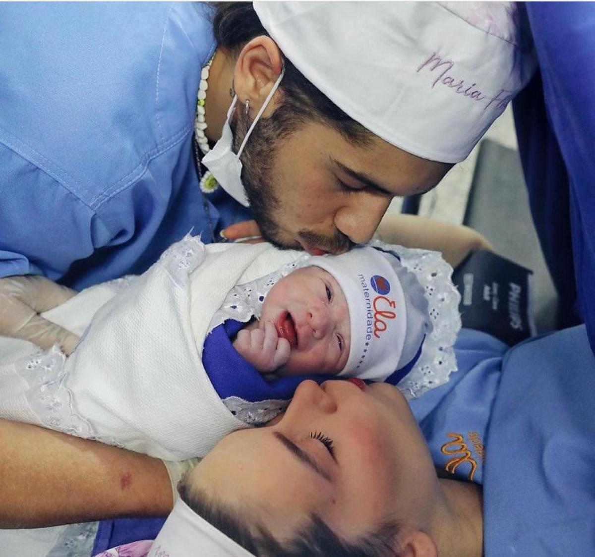 Maria Flor nasceu às 5h33 da manhã, com 3,160 kg e 48 cm. O casal tem uma filha mais velha, Maria Alice, de 1 ano. Neste domingo (23), os dois postaram a primeira foto da família completa após o nascimento da caçula.