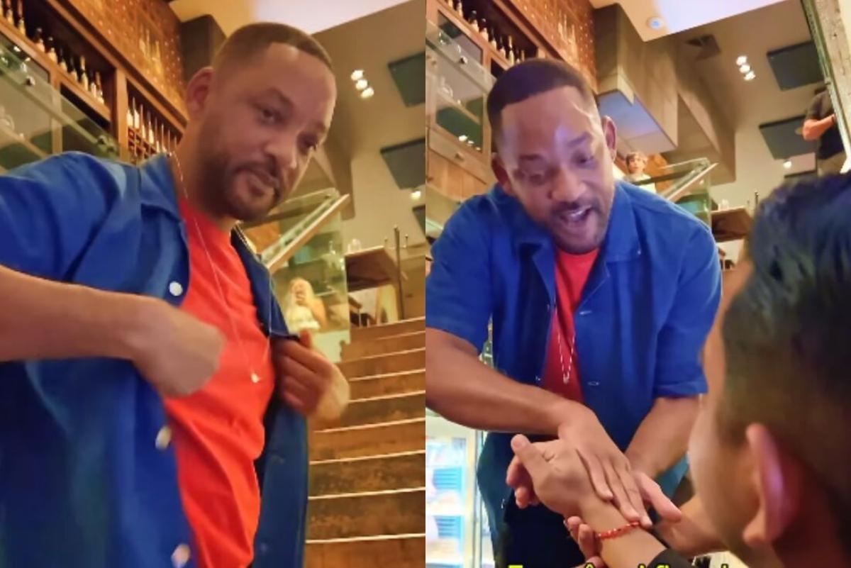 Will Smith trocou presentes com um fã carioca, em sua estadia aqui no Brasil, em vídeo postado na quarta-feira, 18. Ele foi comer em um restaurante no Rio e recebeu um escapulário de um dos funcionários do estabelecimento em que se encontrava, e, ao entender o significado do presente, retribuiu com uma de suas pulseiras.