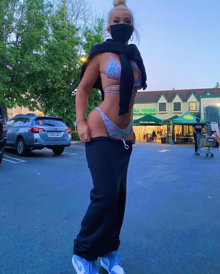 Tana Mongeau, que soma mais de 5,3 milhões de inscritos no YouTube e 5,4 milhões de seguidores no Instagram, foi às compras usando biquíni e máscara de proteção e acabou desagradando internautas.