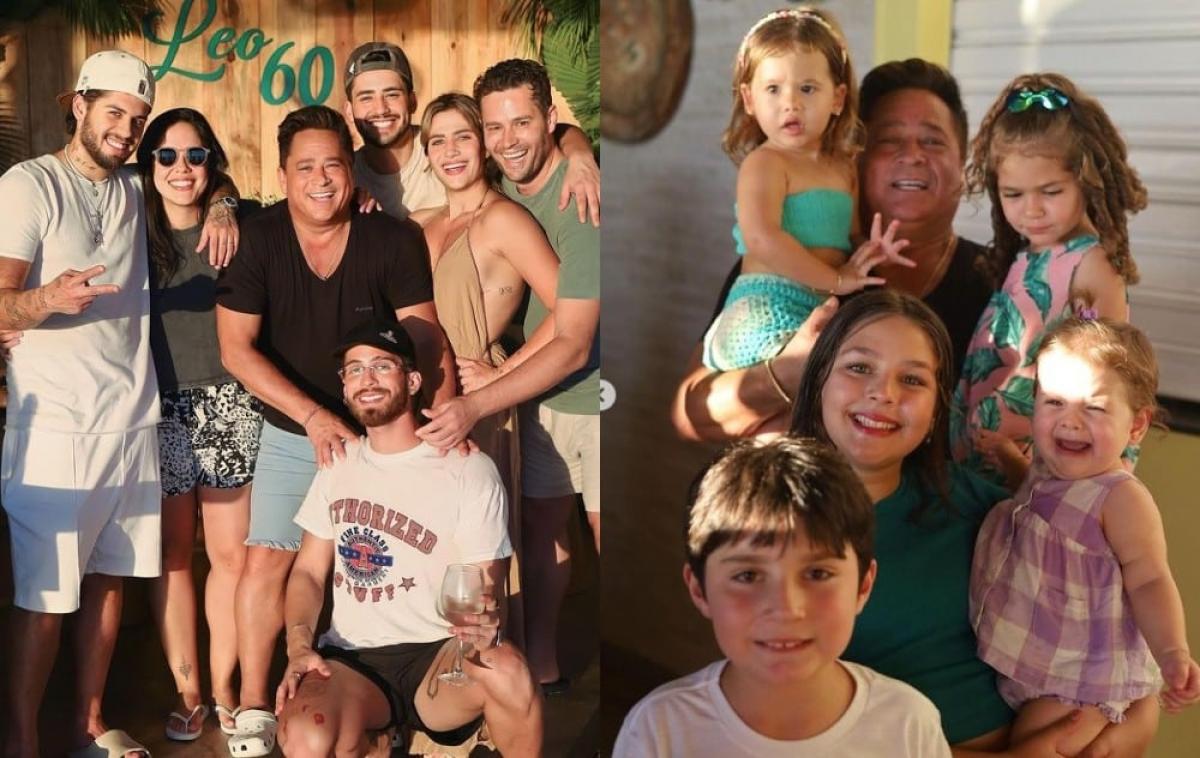 A data foi marcada com uma grande festa em família. Além de posar com os seus herdeiros, que raramente se reúnem, Poliana fez questão de registrar Leonardo com seus netinhos. Do primogênito, Pedro, o cantor teve duas filhas: Maria Sofia, 11 anos, e Maria Vitoria, de cinco anos. Jéssica foi a única que deu um neto menino, Noah, filho de Jéssica Costa. O quinteto fica completo com as caçulinhas Maria Alice e Maria Flor, de dois anos e a outra de nove meses de vida.