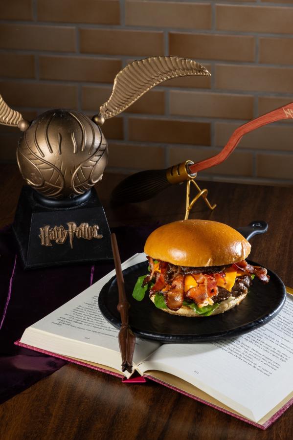 Um dos destaques é o Pomo de Ouro: um clássico hambúrguer de carne angus com uma finalização incrível, numa clara referência à saga de Harry Potter.