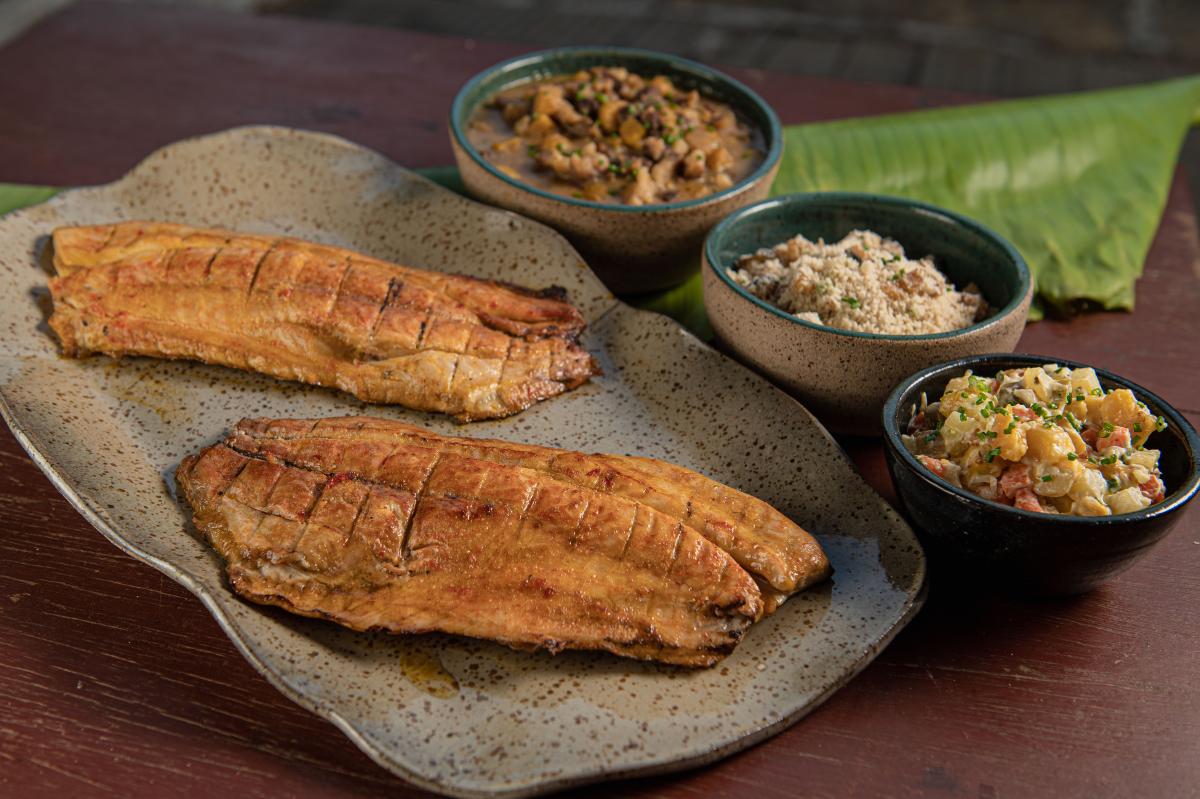 Pousada Rio Claro - Banda de pintado assado com vinagrete de manga e banana