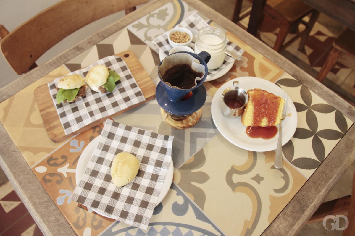 Sobre o cardápio, bastante extenso e variado, Lorenna diz que é composto por receitas de família, como o iogurte que aprendeu a fazer com sua mãe, o bolinho de queijo da tia Laly, o bolo de fubá, também receita da mãe. Ela conta que adaptou algumas preparações. Um exemplo é o iogurte, que agora tem uma versão sem lactose, feita com leite A2 zero lactose; o bolo de fubá, sem glúten e sem lactose, é servido com uma calda de goiabada, que confere ainda mais sabor e uma certa dramaticidade a generosa fatia. É de comer rezando, diria um velho amigo.