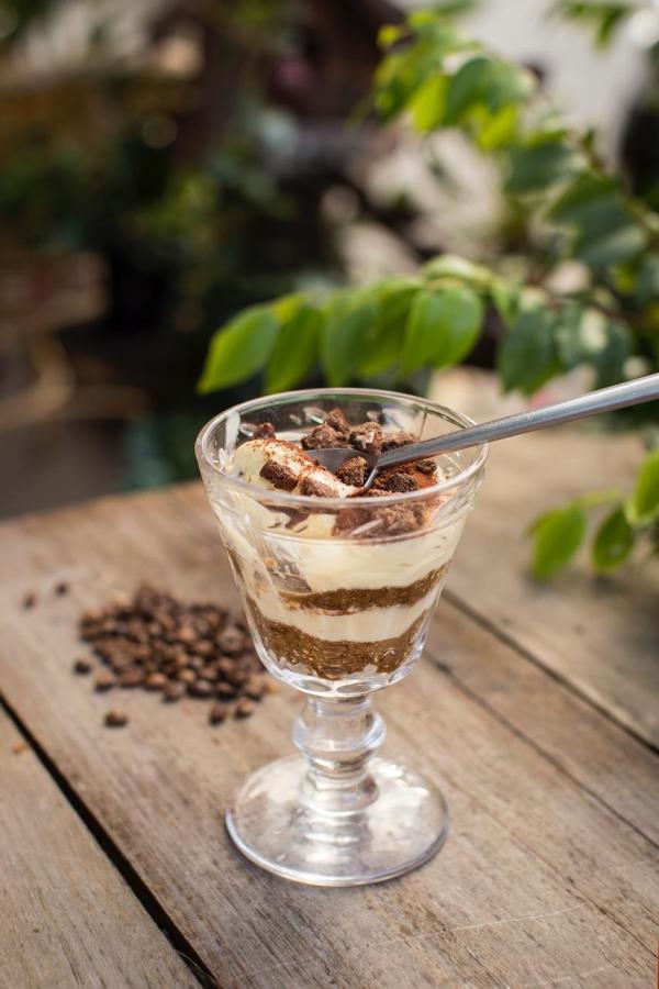 Trata-se de um doce em camadas, feito com biscoitos savoiardi (tipo champanhe), intercalado com uma mistura cremosa de mascarpone, ovos e açúcar, finalizado com cacau em pó polvilhado por cima.
