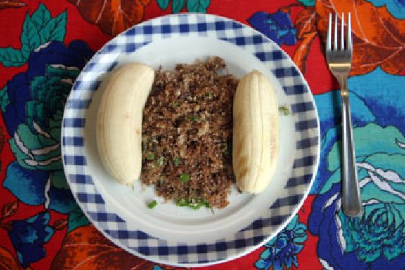 Rosana Pavão Comidas Típicas faz a mojica de pintado e farofa de banana, também dois pratos com o DNA cuiabano e muito apreciados.