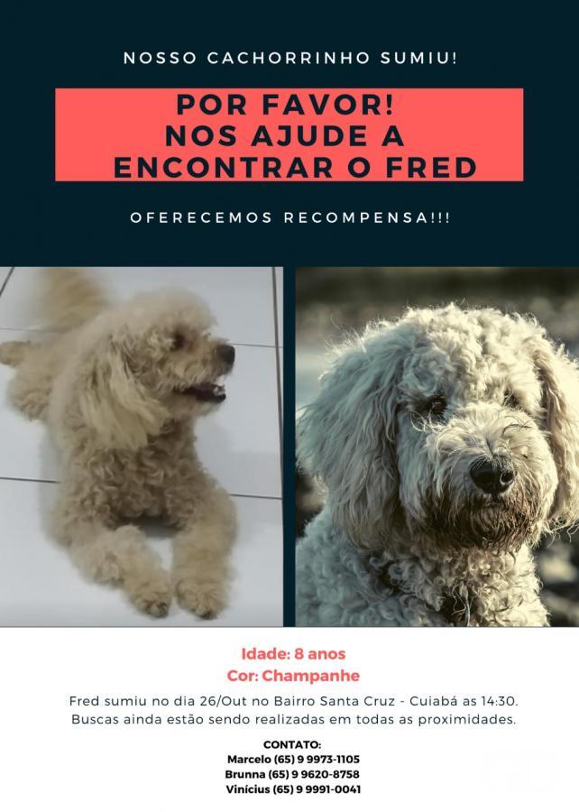 O dono do Fred está desesperado a sua procura há 27 dias. O desaparecido é um Poodle Toy de 8 anos, que fugiu pelo buraco do portão, no bairro Santa Cruz, e não foi mais visto.