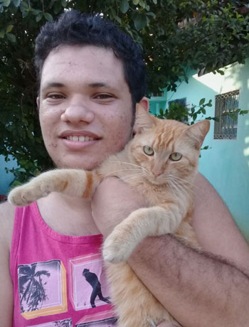 Alguém sabe, alguém viu? Este é o Kadu, o dog da Mariana. Ele foi levado no último dia 16, no bairro Pedregal, em Cuiabá. Se alguém tiver notícias, favor ligar para o telefone | #Este gato é raro O garoto da foto é Bruno Ribas Sena. Ele apresenta o felino raro de nome "Safadão", da raça Garfield Pantaneiro, uma descoberta para estudioso nenhum colocar defeito. |
