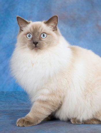 3 = Ragdoll O nome pode ser traduzido como “boneca de pano”, pois costumam ficar dengosos quando os pegamos no colo. Têm pelos sedosos de cores distintas e olhos azuis. Está entre as raças de gatos gigantes. |