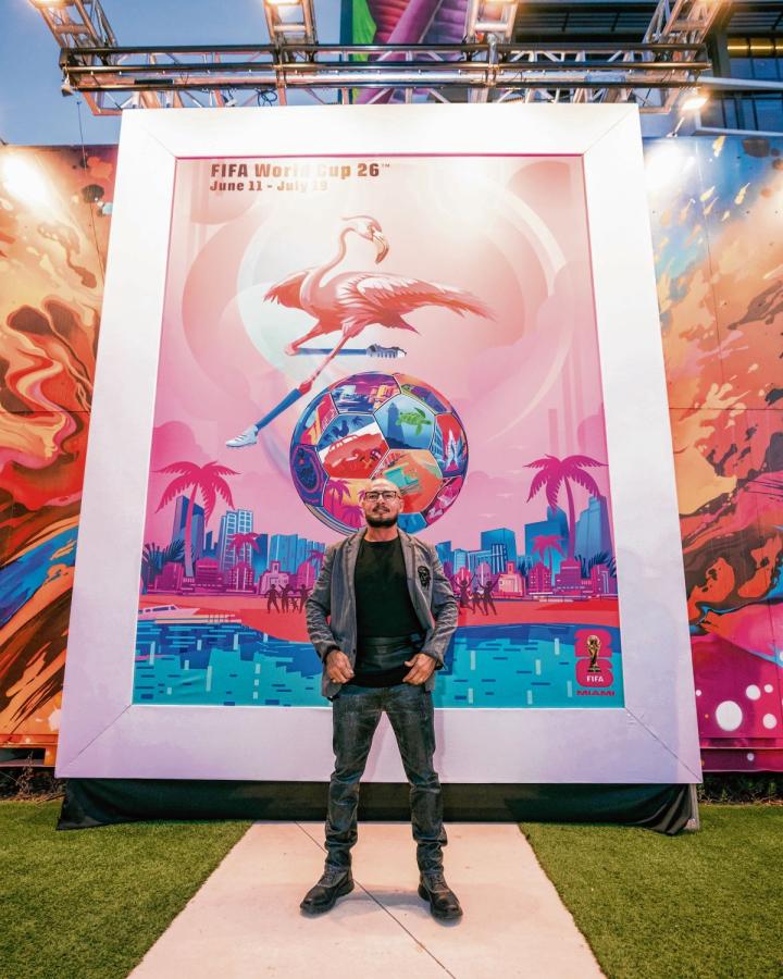 O jogo foi desastroso, mas ainda temos um brasileiro já brilhando na Copa 2026 e sem a bola no pé! O artista maranhense Rubem Robierb acaba de anunciado como vencedor do concurso que escolheu o poster oficial da FIFA 2026 para a cidade de Miami. Nos Estados Unidos, Rubem é constantemente citado por celebridades como Charlize Theron, Jennifer Lopez e a dupla Domenico Dolce e Stefano Gabbana. Além disso, assina escultura fixa em uma praça de Nova York, onde também já estampou os telões da Times Square. Aplausos!