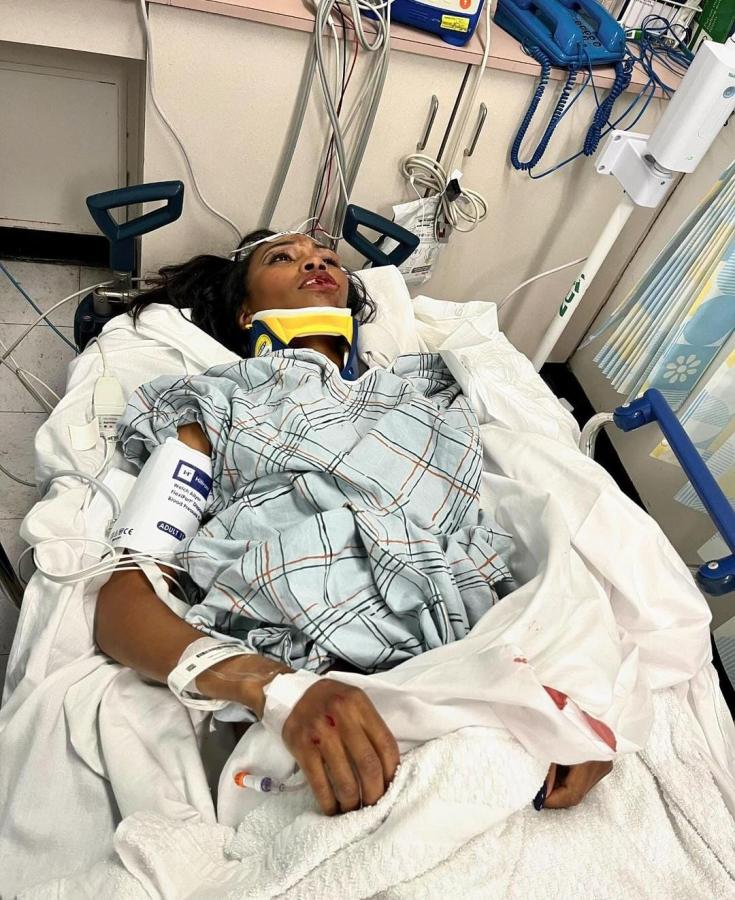 Carrie postou uma foto no hospital e os ferimentos chocaram seus fãs. A primeira manifestação nas redes sociais foi da mãe da atriz, Patricia Lee. Ela contou o que ocorreu. “Um homem estava tentando escapar de um atropelamento (na verdade, de acordo com a revista People, se tratava de uma perseguição policial) e bateu em vários carros antes de atingir uma barraca de comida na qual ela e sua amiga estavam perto”, escreveu.