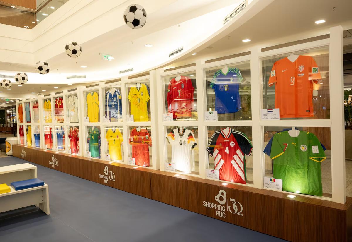 No aquecimento para a Copa do Mundo de 2026, o Shopping ABC reuniu camisas históricas de mais de 50 seleções de futebol na mostra “A Paixão Mundial”, disponível até 26 de abril, na Praça de Eventos do piso 1.