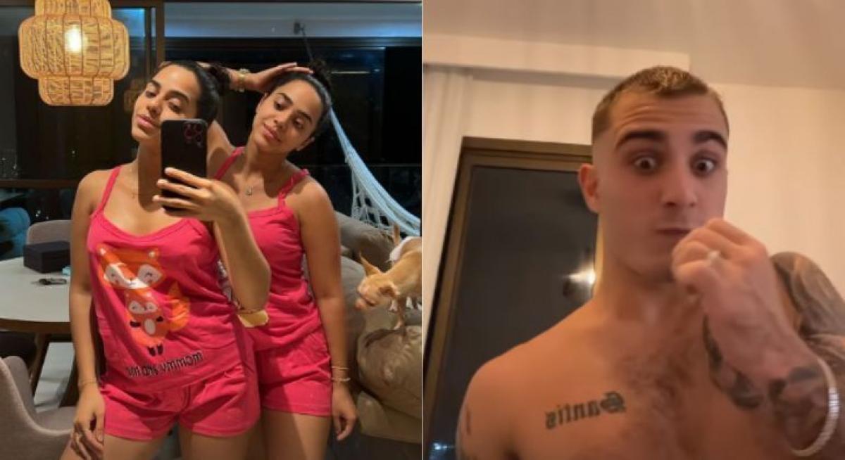 Primeiro, as irmãs foram falar com Gabriel, namorado de Mirella. Assim que viu as gêmeas, o surfista já perguntou quem era quem, para não confundir a namorada com a cunhada. "Quem é? Quem é? Quem é? Podem trocar de roupa, que eu não vou ficar toda hora confundindo, não", disse Zinho, como é conhecido nas redes sociais.