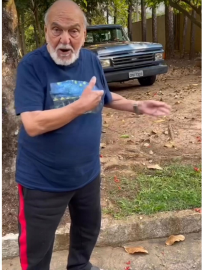 ‘Essa caminhonete era do Sinhozinho Malta. Tô certo ou tô errado? Quando terminou a novela, a Ford me deu a caminhonete dele. E eu mantenho ela aqui, entre as árvores, que ela fica mais solene‘, compartilhou o ator. ‘Ela já rodou 1 milhão de km, sem mexer no motor. Eu não estou fazendo propaganda, primeiro porque a MWM já faliu‘, disse ele, aos 92 ano de idade.