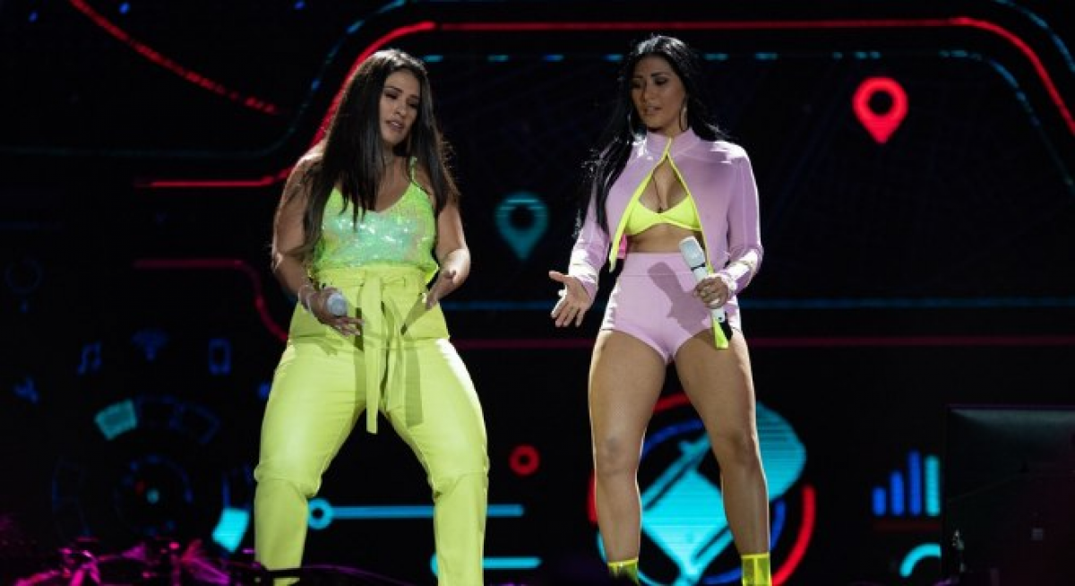 As irmãs têm estilos bem diferentes de se vestir e, cada uma na sua, optaram pelo tom amarelo neon em seus looks, garantindo harmonia visual durante festival, que contou também com show de Anitta, entre outros artistas.