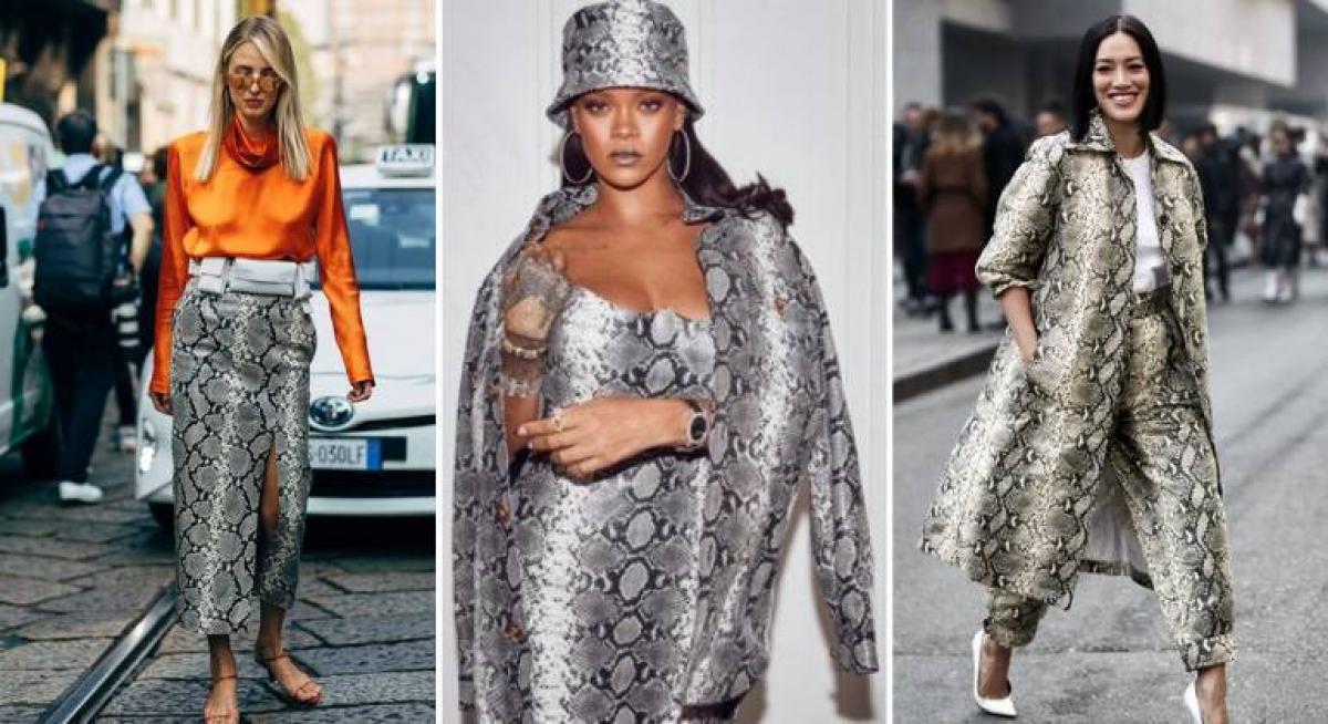 Rihanna, por exemplo, é uma das celebridades que já aderiram a essa tendência. A artista chegou a usar um chapéu bucket hat com um vestido tubinho e sobretudo, todos em píton da marca Versace. Para arrematar o visual, ela escolheu sapatos Louboutin, com estampa semelhante.