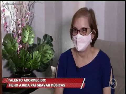Filho ajuda pai gravar músicas