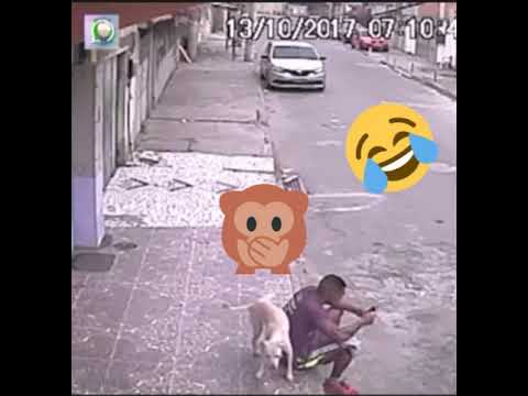 Cachorro mija em homem sentado na calçada