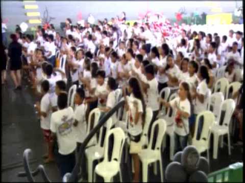 Os alunos do ensino fundamental realizam uma grande celebração.