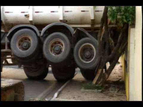 Ele transportava brita e por pouco não aconteceu uma tragédia.