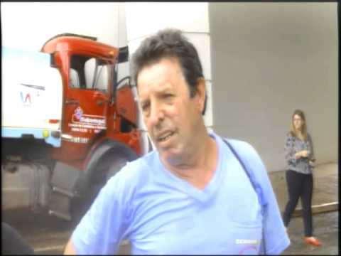 O caminhão-pipa invadiu o estacionamento de uma loja de materiais de construção.